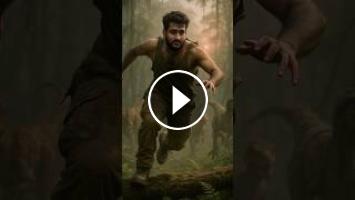 ULTRA-REALISTIC ACTION SHOT, 9:16. ME (TORN GREEN TANK, DIRTY CARGOS) LEAPING OVER A MOSSY LOG IN A MISTY HISTORIC JUNGLE. FOUR FEATHERED VELOCIRAPTORS WITH DEADLY CLAWS CHASE THROUGH DENSE FERNS AND VINES. SEMI RED SUNLIGHT FILTERS THROUGH ANCIENT TREES. SHOT ON ARRI ALEXA 65 WITH ANAMORPHIC LENSES -- HYPER-DETAILED, NATURAL LIGHTING, DOCUMENTARY REALISM. JURASSIC PARK MEETS SURVIVAL HORROR.