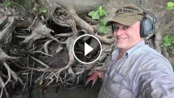 What an awesome discovery! This is the first day that I discovered what would become The Beaver Hole relic bonanza. While metal detecting in the river at this battle site, I scared a beaver out of his den and he startled me as he swam off. Just a few minutes later, I began hearing relics in and around the roots of his den. Even after this detection, I have returned several times and found many more relics here.