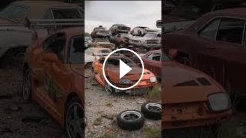 Toyota Supra de la película rápido y furioso abandonado según la inteligencia artificial. Toyota Supra naranja de Paul Walker abandonado en un deposito de chatarra con la ayuda de la IA.