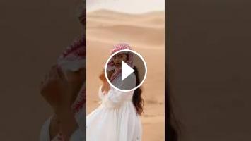 The young Indian woman is wearing a beautiful flowing White outfit, with a Kifaya round folded on her head that has a delicate draped elegantly over her head & some cloth of kifaya holding on her face. The fabric softly frames her face, adding a sense of mystery and charm. Her medium straight hair is open and gently styled with soft waves, flowing naturally hairs behind the back. The atmosphere is soft, romantic, and subtly lit with warm, diffused light that creates gentle shadows and highlights, giving depth and softness to the image. she is looking in front with very sexy eyes. The background is dessert behind her like in she is in Dubai, windy environment-like soft curtains or natural textures-keeping the focus on her serene expression and stylish pose. Only enhance the image for beauty, lighting, and realism while keeping the face and facial feat