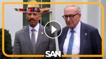 President Donald Trump posted a video created with artificial intelligence that makes it look as if Sen. Chuck Schumer, D-N.Y., is disparaging his party and its voters, while House Democratic Leader Hakeem Jeffries, N.Y., stands by silently with a sombrero and mustache. The video has 23 million views on X and counting.